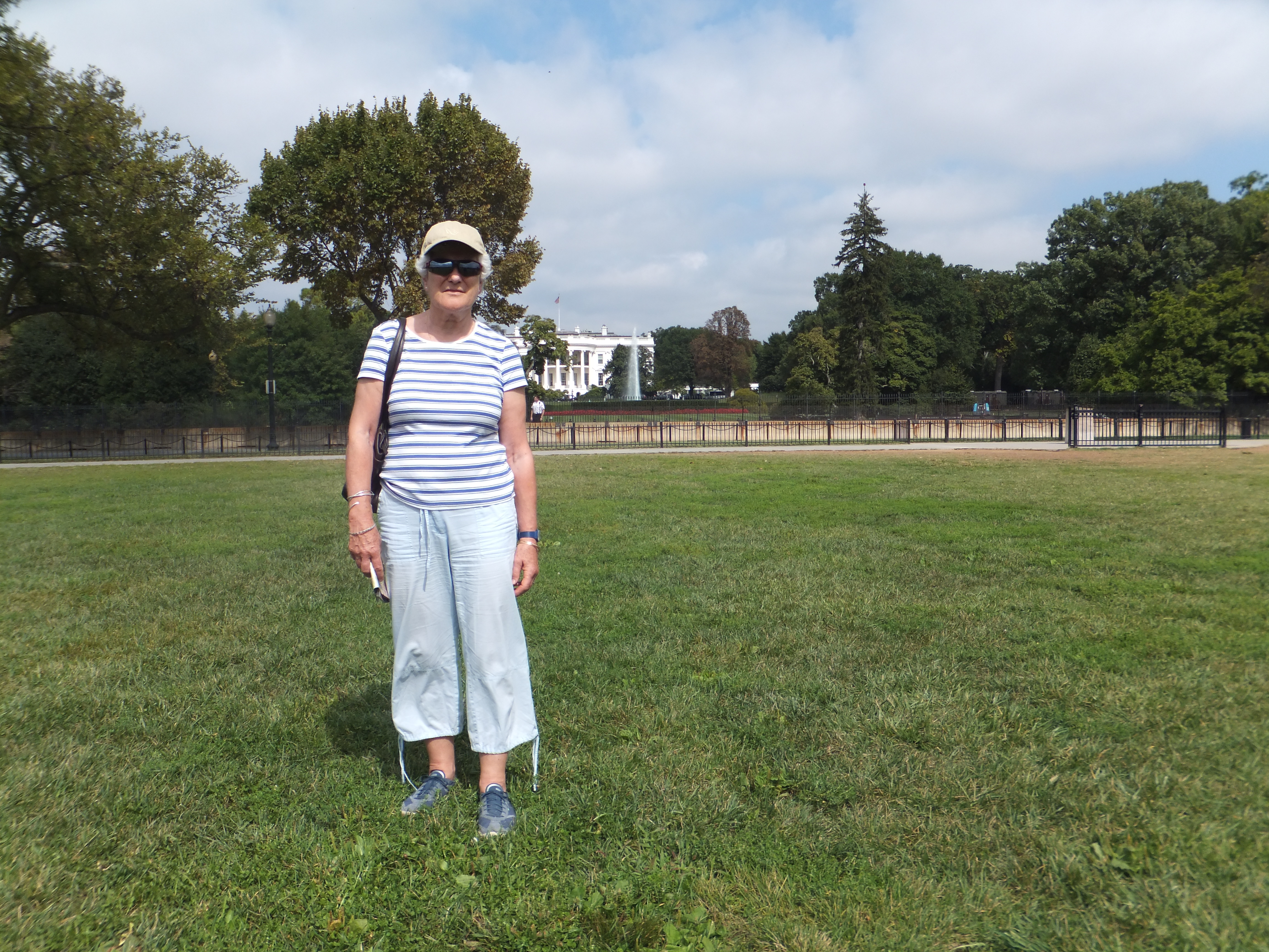 Arrived at the Washington Monument around midday on a lovely warm sunny day (by that time), and then walked up to the White House. As it was the day after the incident with the White House intruder, the Secret Service (you know they are Secret Service agents because their T shirts have it written across them – this seems funny to the Britons) had cordoned off the White House even further.
