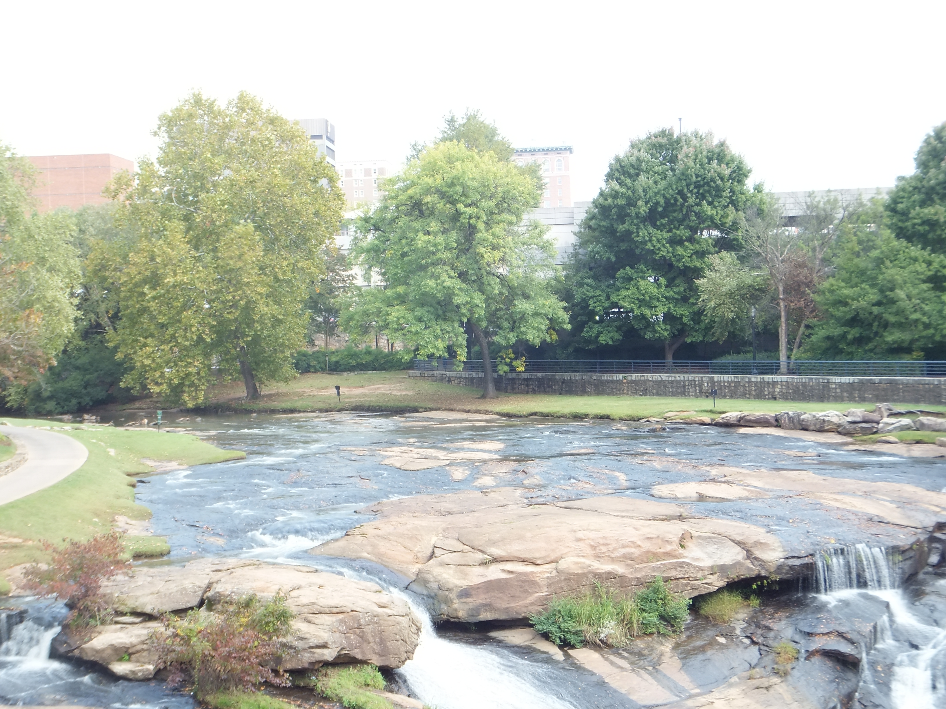Trish and Chris showed us their local city, Greenville, which is very fine. The old, run-down city centre has been tidied up, and an interesting new curved bridge has been built over the river and waterfalls. Beside the river there is now an attractive park with walking and cycling trails.
