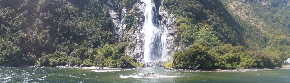 We were lucky it was a lovely day, because it rains for over 200 days of the year there. So we were able to go almost under a spectacular waterfall, as well as getting close to fur seals basking on the rocks. To our excitement we spotted some Fjordland Crested Penguins emerging onto the rocks on the other side of the Sound, and were able to approach them, too. We were glad to have taken an early cruise, as when we returned the coach park was full and the place was really busy. We were amused by one of the info boards, all about sandflies. We didn’t stop to read it, as we noticed that the little pests were swarming round the other visitors.