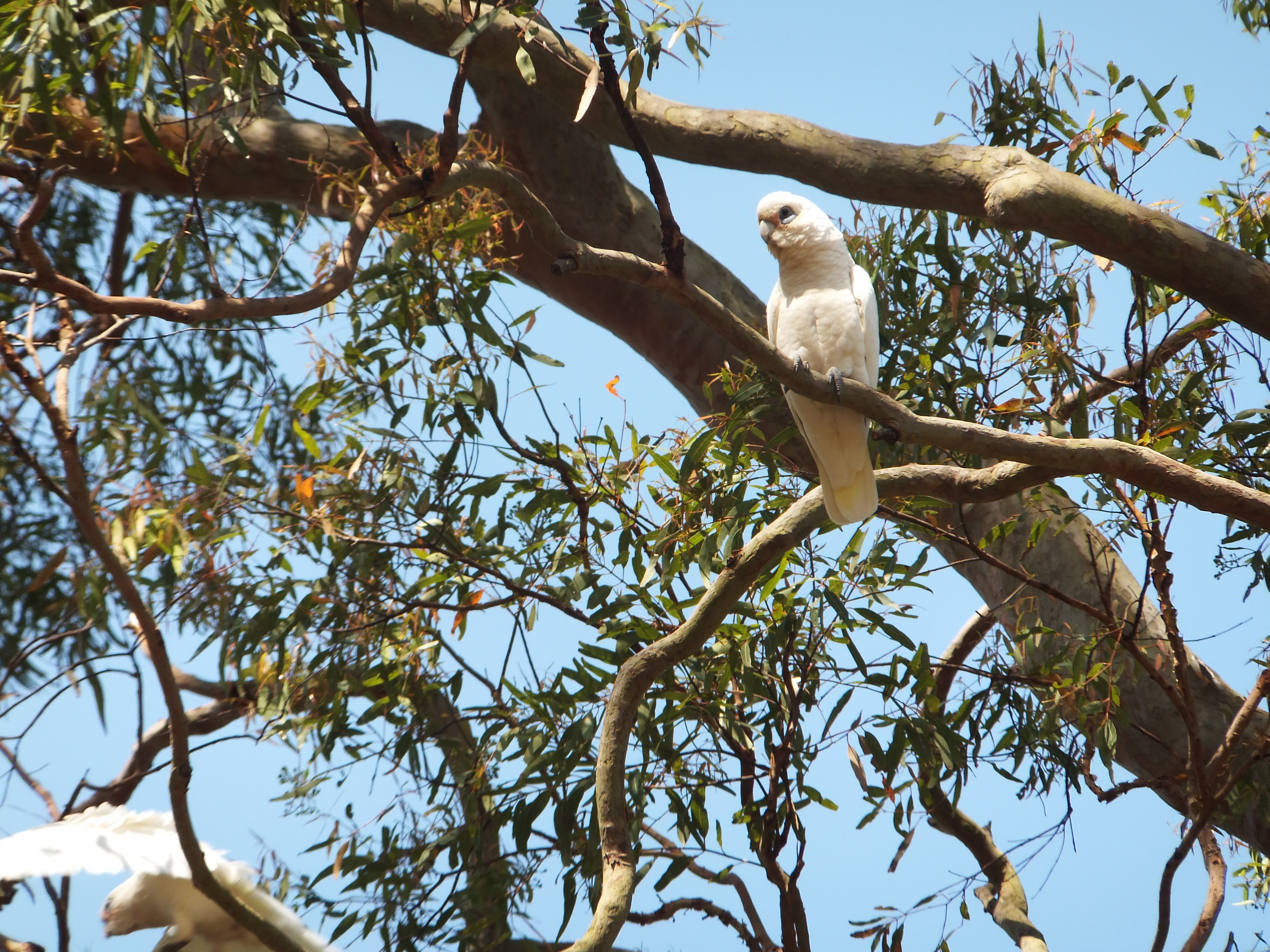 Sunday for Chris and Jane means cooked breakfast, so we enjoyed scrambled eggs and mushrooms and lovely nutty toast with a mug of the barista’s coffee – Chris has a splendid little machine which makes a good espresso and an even better flat white. Then we set forth south to Port Hacking (Sydney Harbour, south to Botany Bay, and P H is the next one) through the Royal National Park. Richard was with Chris, who was delivering an old car to their friends in Bundeena, where we had lunch. We walked into the park over the road from their house to admire the huge twisted gum trees and watch sulphur-crested cockatoos and little corellas with their blue eyes.