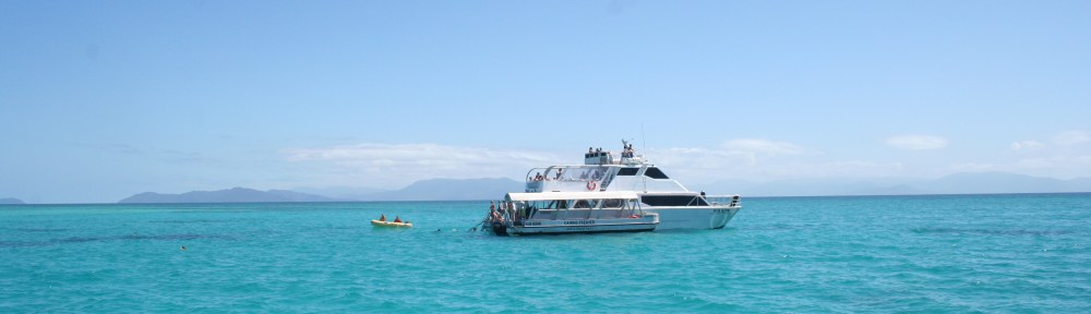Then there was our day out on the Great Barrier Reef on the old pearl lugger the ‘Falla’ skippered by an eccentric American called Doug who, with his young crew, turned it all into one long party. About 20km from shore we anchored and snorkelled (Richard went diving as well). The water is very clear, warm and only about 3m deep on the reef.